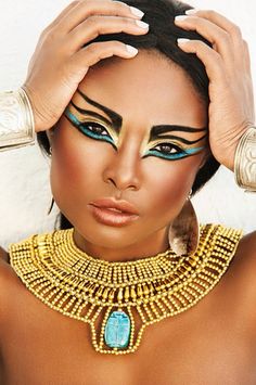 The smoky kohl liner served both practical and ritualistic purposes. It was thought to repel flies, protect the eyes from the Sun’s rays and ward off infection. Makeup helped to imitate the looks of the gods. Favorite eye make up colors were black and green and outlining the eyes with pigment was deliberately done to created an almond or feline shape.
